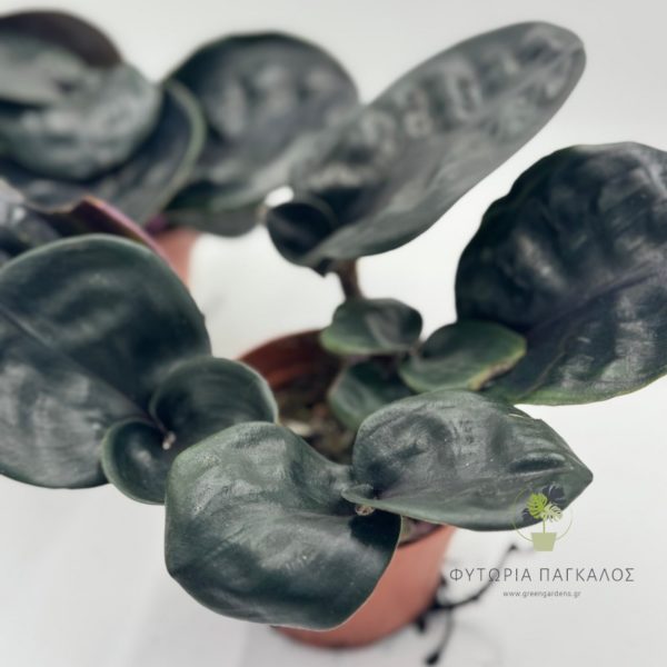 Τα φύλλα του είναι μεγάλα, βελούδινα και ελαφρώς κυματιστά, αντανακλώντας το φως με τρόπο που δημιουργεί μεταλλική λάμψη.