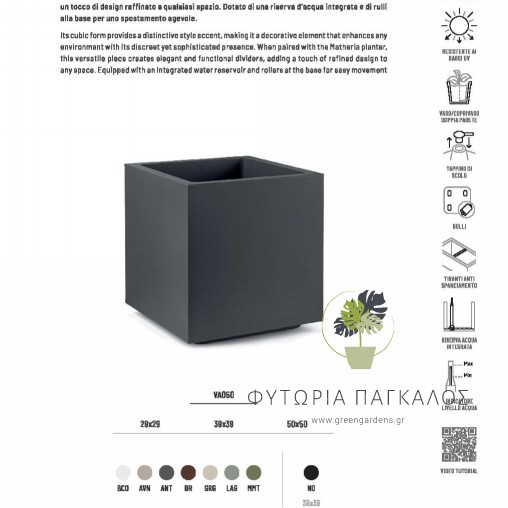 Χαρακτηριστικά της Γλάστρα Κύβος Veca Cubo με Δεξαμενή Νερού & Ροδάκια